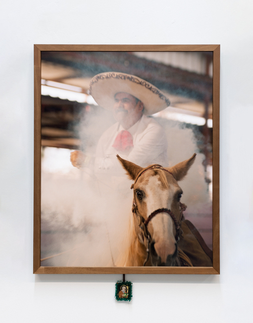 Archival inkjet print with Escapularios with wooden frame, 24 × 20 × 1 in.