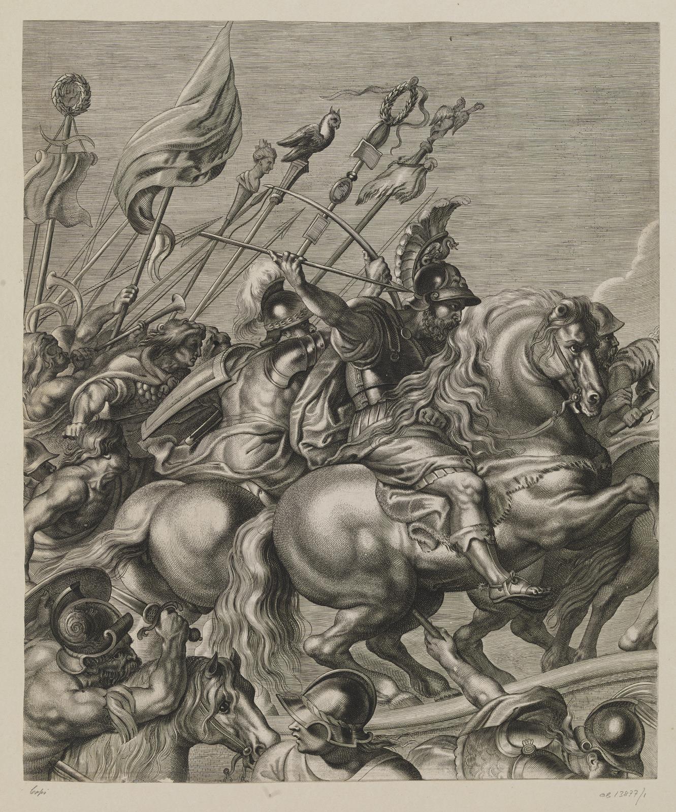 The Final Battle of Gaw and Talhand (painting, recto; text, verso), Illustrated folio from a manuscript of the Shahnama by Firdawsi