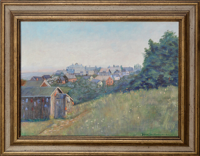 Title: Richmond Irwin Kelsey, Vintage Coastal Maine Landscape "Island Inn, Monhegan Island" (1977)