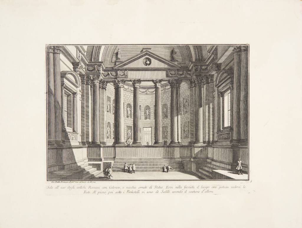 Plate 9: Colonnaded hall according to the custom of the ancient Romans (...), from "Part one of architecture and perspectives: drawn and etched by Gio. Batt'a Piranesi, Venetian Architect: dedicated to Nicola Giobbe" (Prima parte di Architetture, e prospe