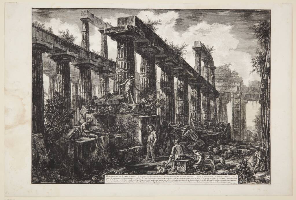 Etching, Différentes vues de quelques Restes de trois grands Edifices qui subsistent encore dans le milieu de l'ancienne Ville de Pesto autrement Posidinia qui est située dans la L...