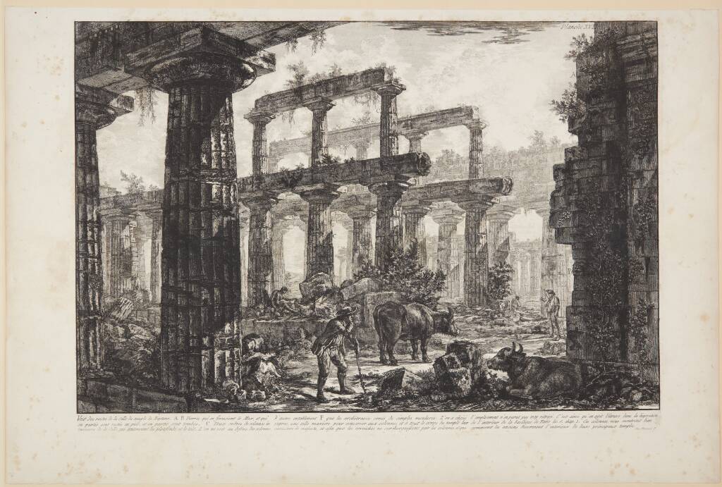Etching, Différentes vues de quelques Restes de trois grands Edifices qui subsistent encore dans le milieu de l'ancienne Ville de Pesto autrement Posidinia qui est située dans la L...