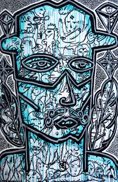 Acrylic, solid marker and paint marker on canvas, 125 × 90 cm.