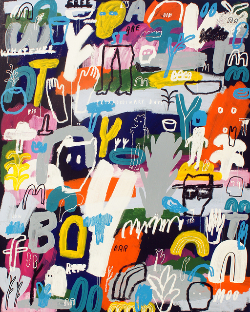 Acrylic, solid marker and paint marker on canvas, 125 × 90 cm...