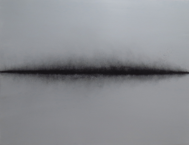 Graphite fixing to the drill on canvas, 146 × 114 cm...