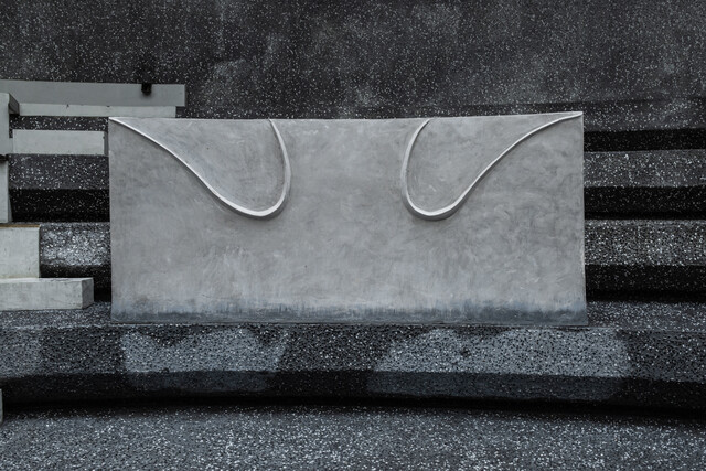Rocket debris steel body, concrete, iron, 215 × 64 × 96 cm.