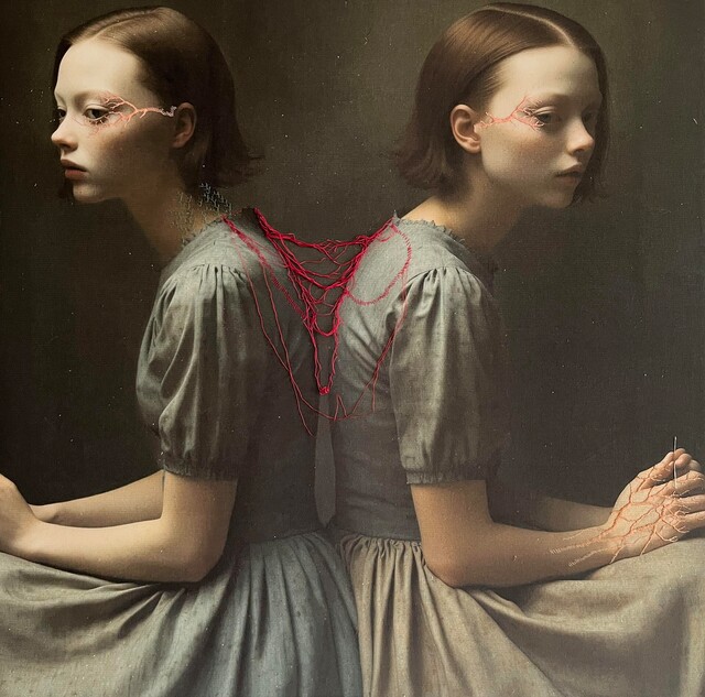 Hand embroidery, drawing and photography on canvas, 27 × 17 cm...