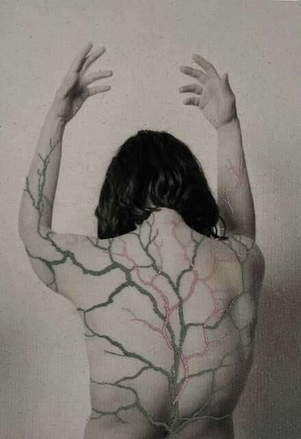 Hand embroidery, drawing and photography on canvas, 27 × 17 cm.