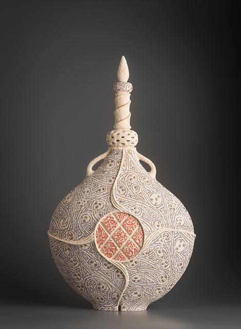 Hand-built, glazed and stencilled earthenware, 66 × 39 × 19 cm.