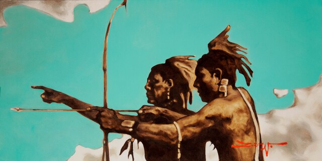 Z.Z. Wei, Hunters (after E. Irving Couse Photo of Two Models from Taos Pueblo, 1906) (2022)