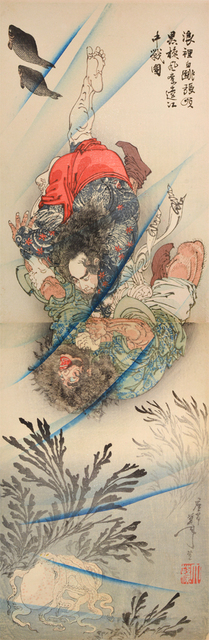 Tsukioka Yoshitoshi, Li Kuei Battles Chang Shun Underwater (1887)