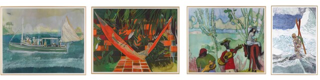Peter Doig, Set of Four Prints - Alpinist, House of Music (Soca Boat), Alice at Boscoe's, and Music (2 Trees). (2023)
