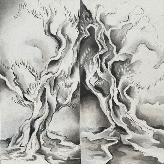 Acrylic, Gesso, and Charcoal on Canvas, 20 × 20 in.