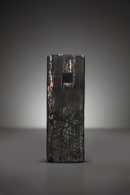 Wood, mirrors, carbon powder, 120 × 90 × 70 cm...