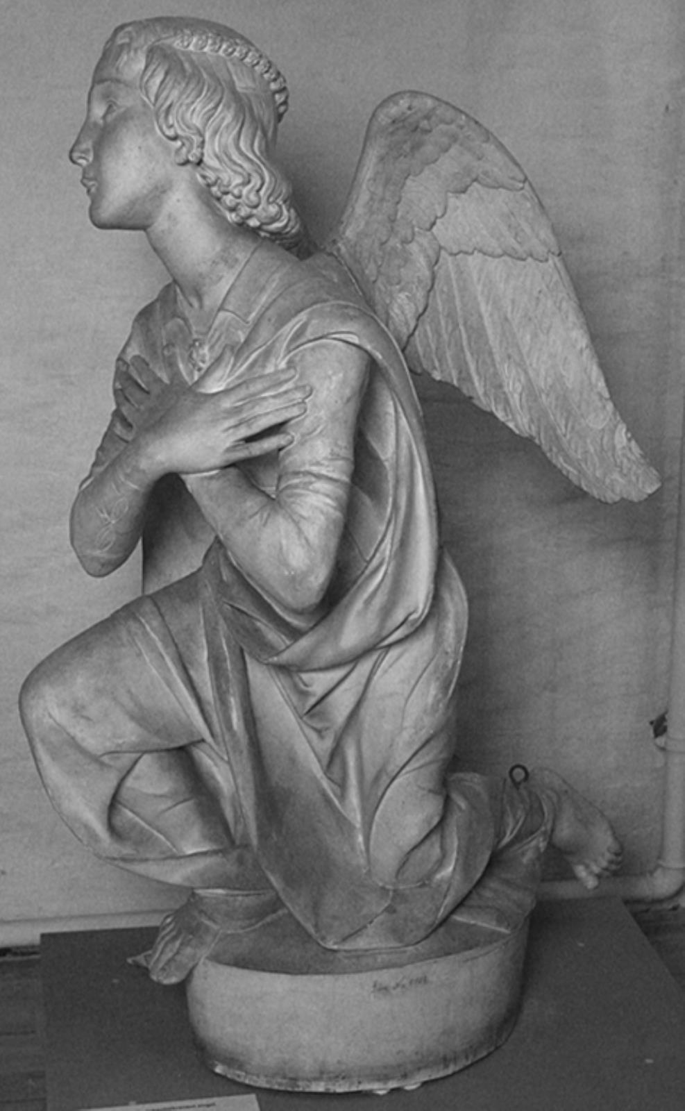Knælende engel, rosenbekranset