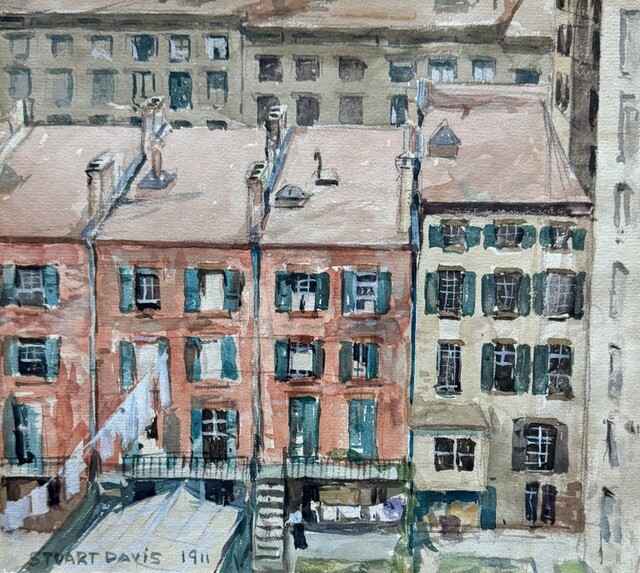 Stuart Davis, "Backyards" Early 20th Century Watercolor Fauvism Social Realism American Scene (1911)