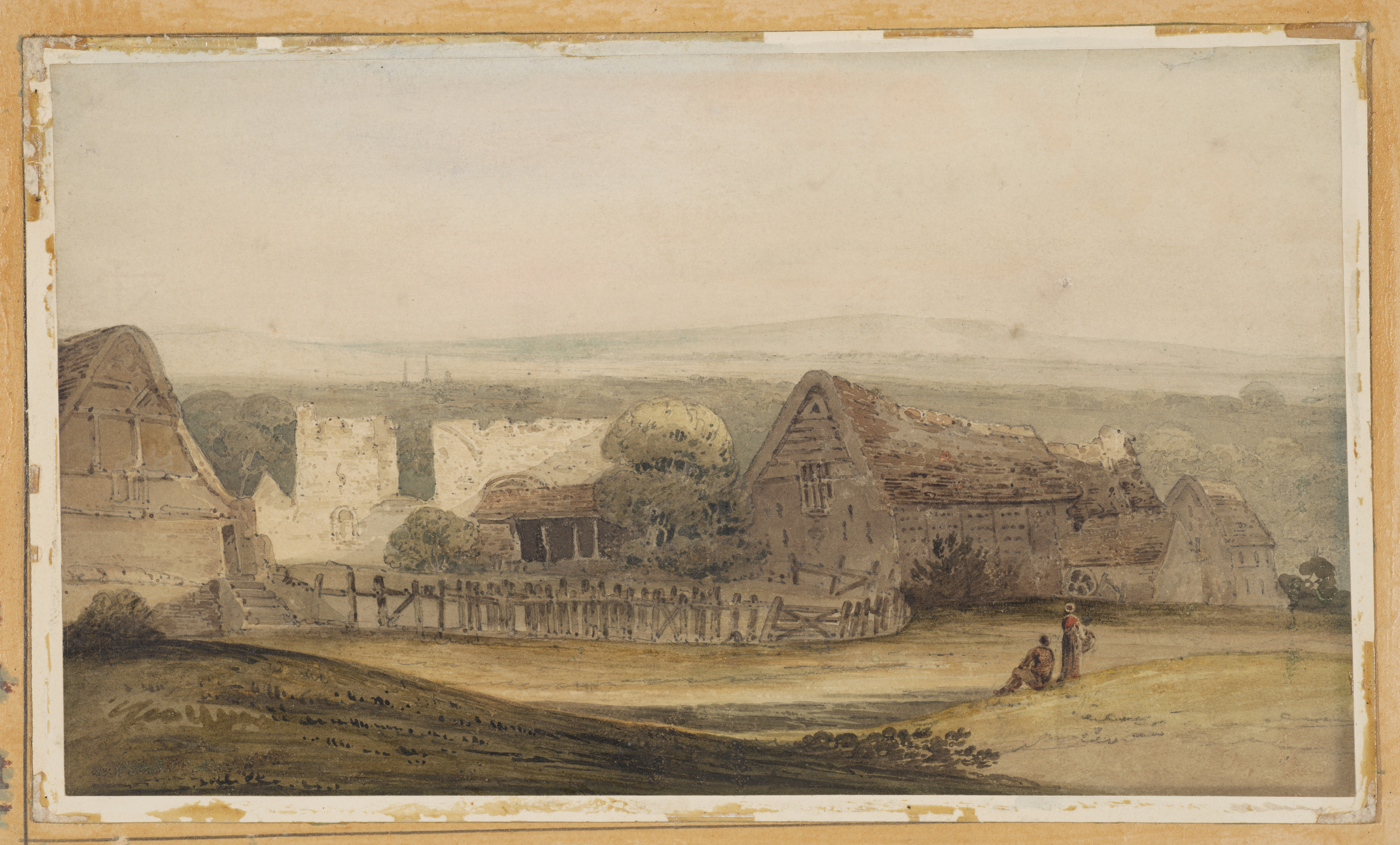 Title: An Extensive Building with Farm Buildings and Church Ruin