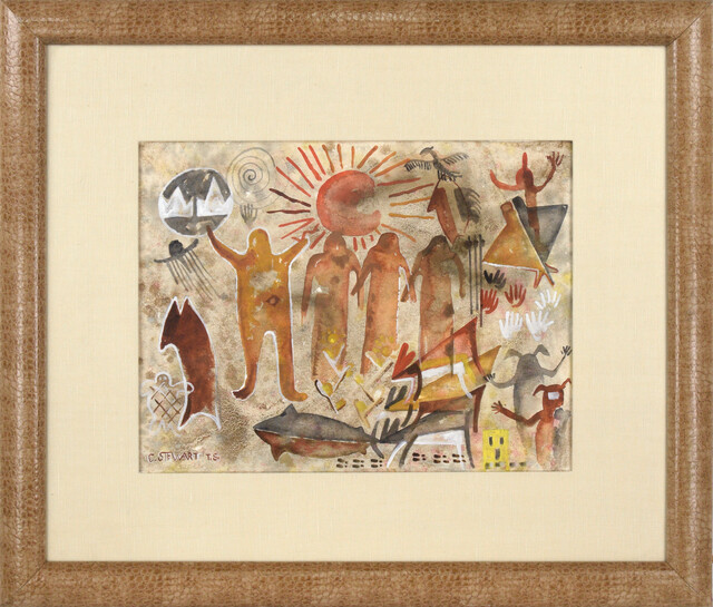 Title: Charles Stewart, Pictographs and Symbols Rain Dance Taos Society of Artists Taos New Mexico (Late 20th Century)