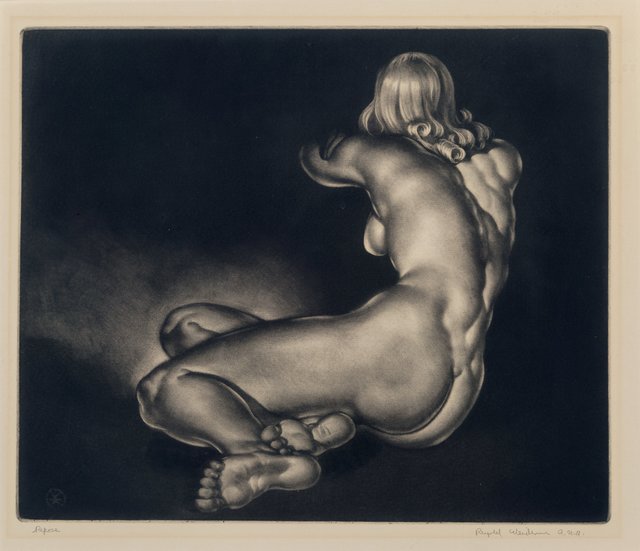 Mezzotint on paper, 15 × 13 in...