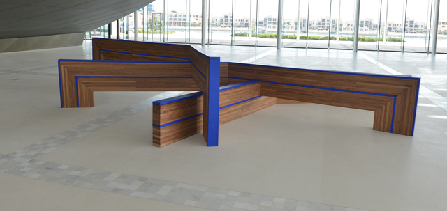 Wood and painted wood, elastic wire, 114 × 729 × 555 cm.