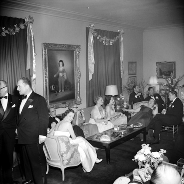 Slim Aarons, Kitty Miller's New Year's Eve Party: Mrs. William Randolph Hearst, Elsa Maxwell, and friends (1953)