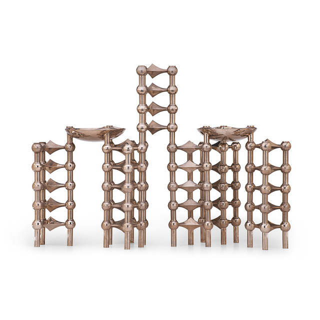 Title: Fritz Nagel and Ceasar Stoffi, Interchangeable and interlocking candlestick sculpture with 24 candlestick elements and two dish elements, Germany (1960s)