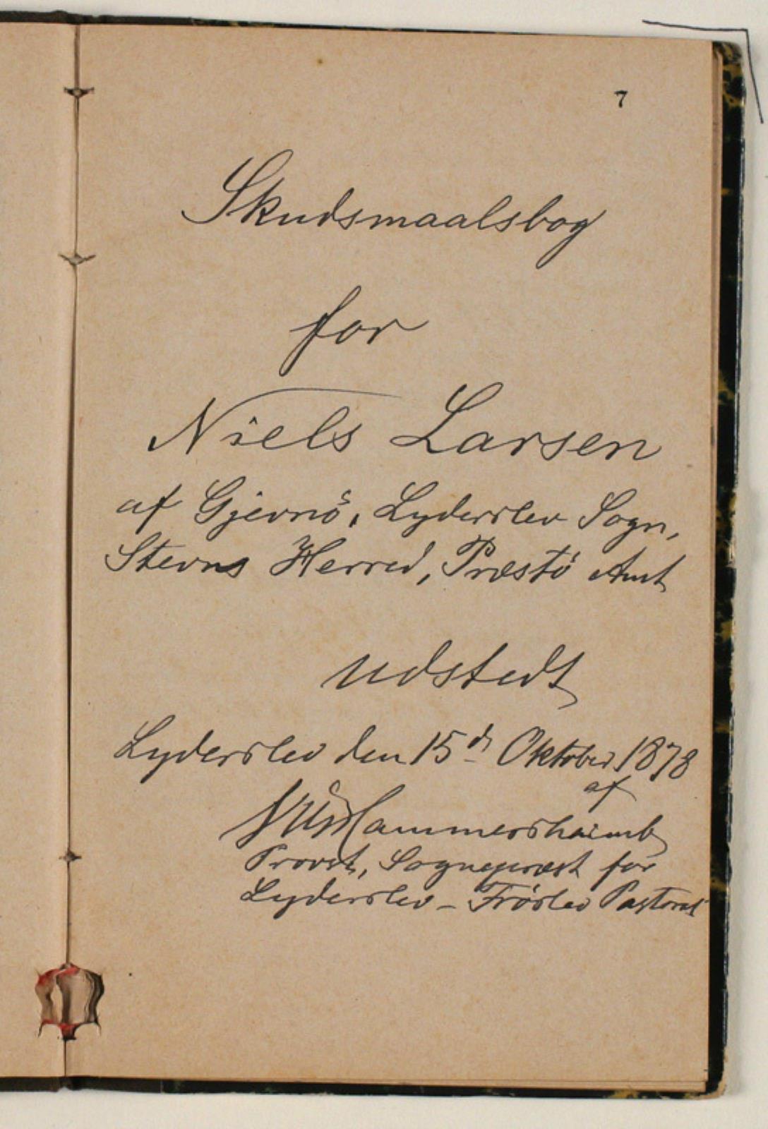 Title: Skudsmål o.a. for Niels Larsen Stevns 1878 af præsten i Lyderslev