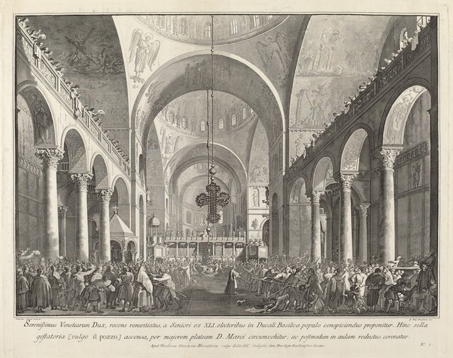 Title: Giovanni Battista Brustolon after Canaletto, The Newly Elected Doge Presented to the People in San Marco (1763/1766)