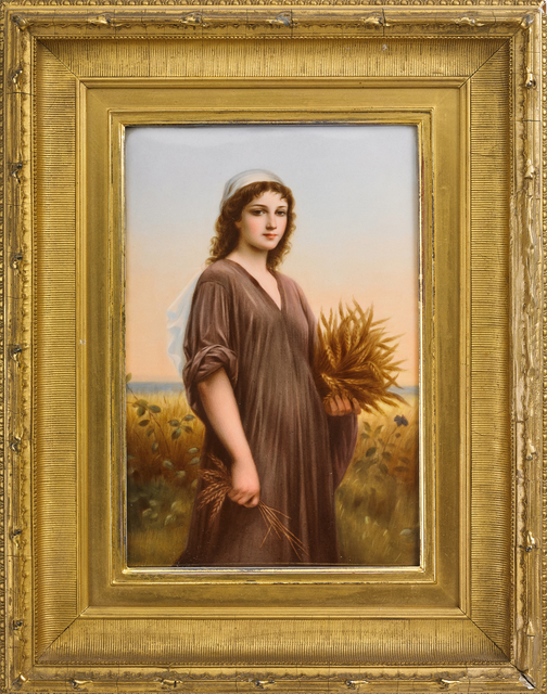 "Ruth", young woman gathering wheat, displayed in giltwood frame, Germany.