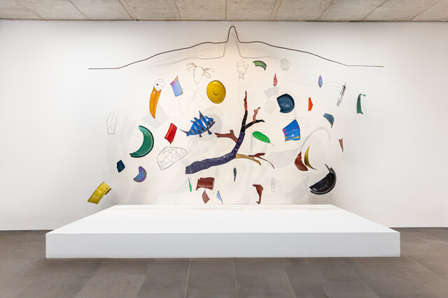 Concrete reinforcing steel, wire and recycled plastics // Fer à béton, fil de fer et plastiques de récupération, 280 × 500 cm.