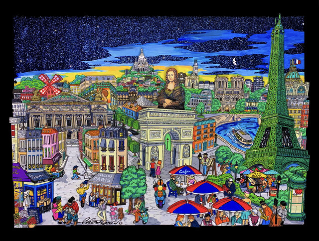 Title: Charles Fazzino, The Tower Looms Large Over Paris (2019)