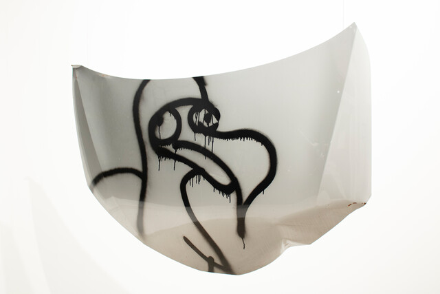 Toyota car hood, spray paint, 44 × 57 × 6 in.