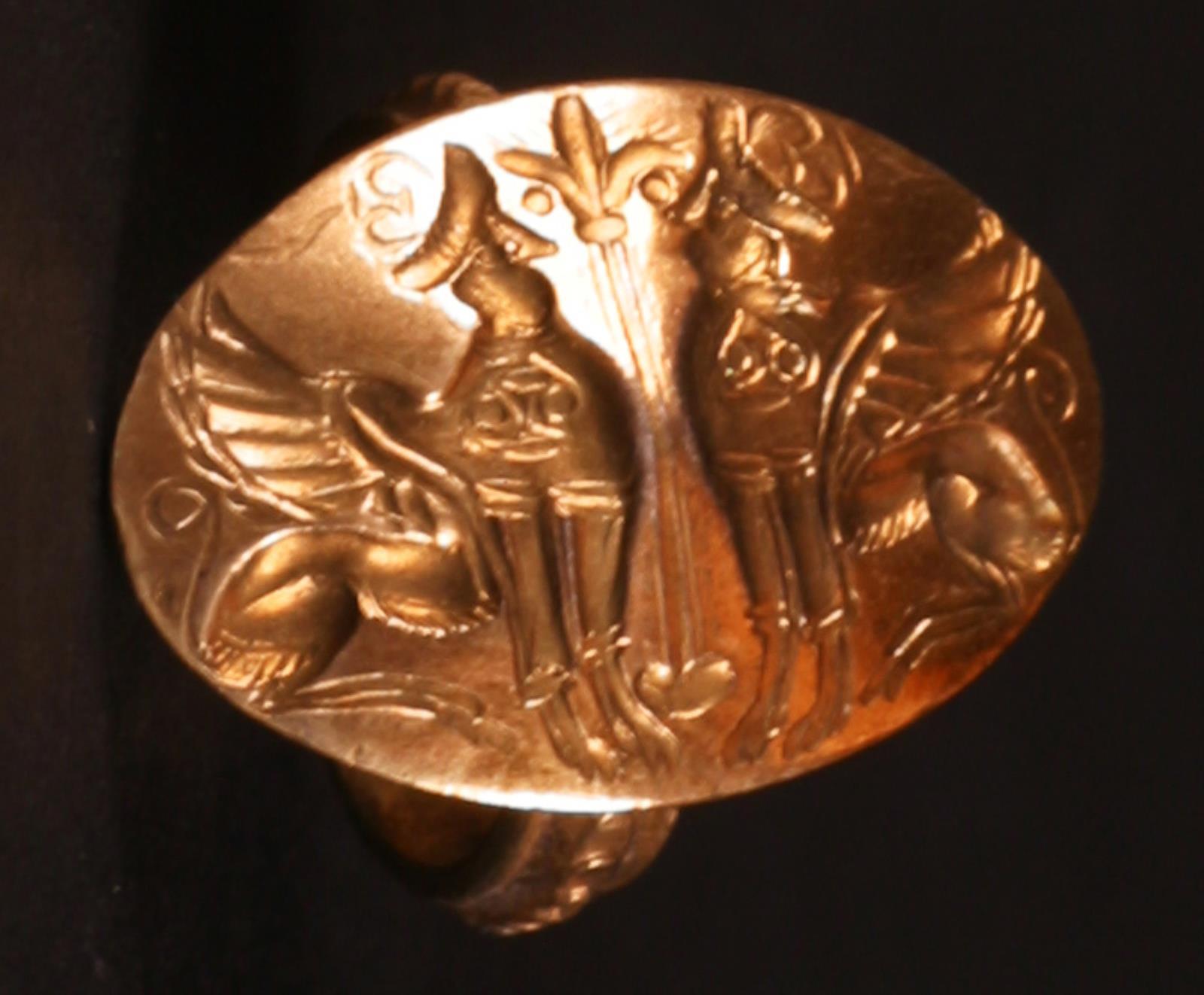 Signetring. Oval. To antitetisk placerede sfinkse
