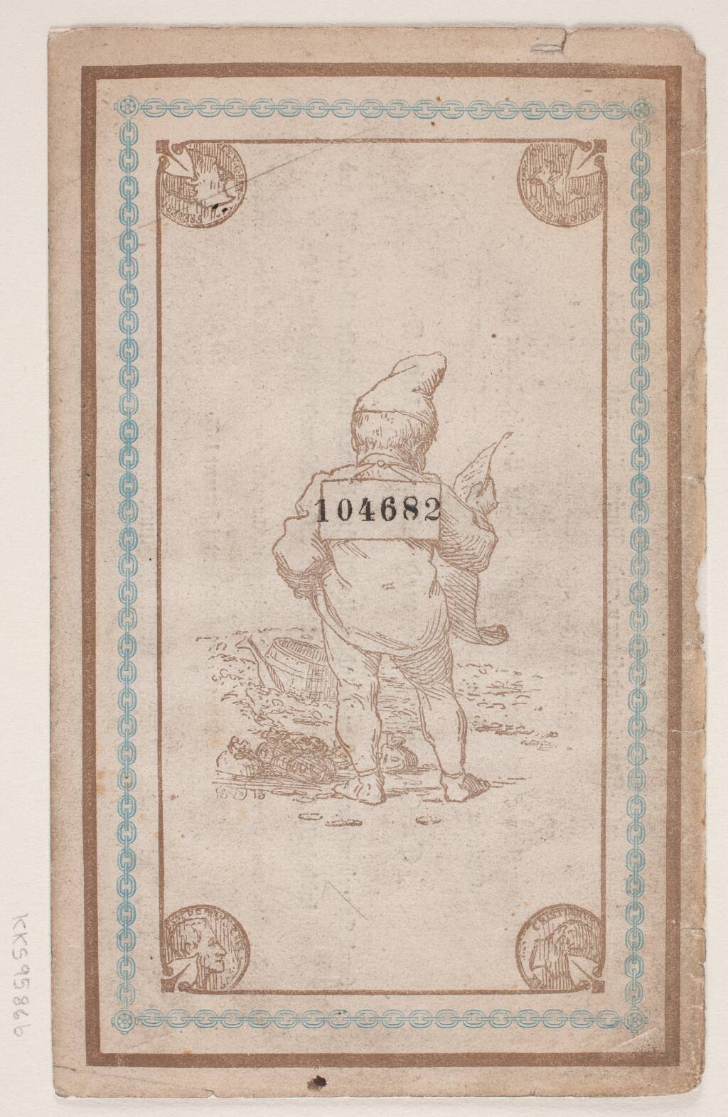 Title: Omslagets bagside til "Flinchs Almanak"
