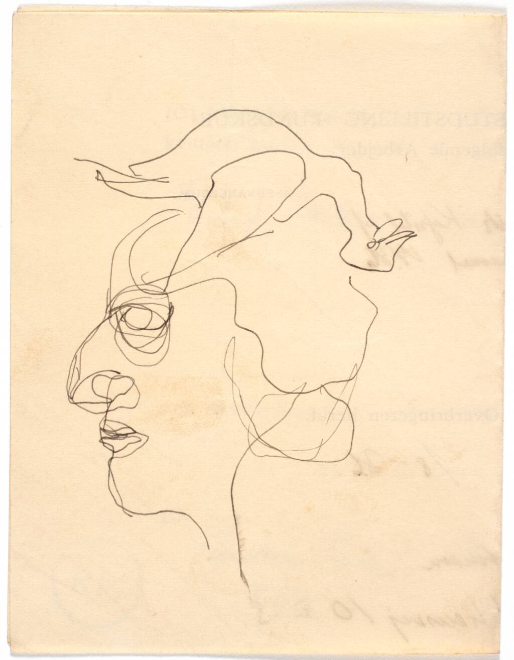Title: Portræt af Sonja Ferlov i profil mod v.
