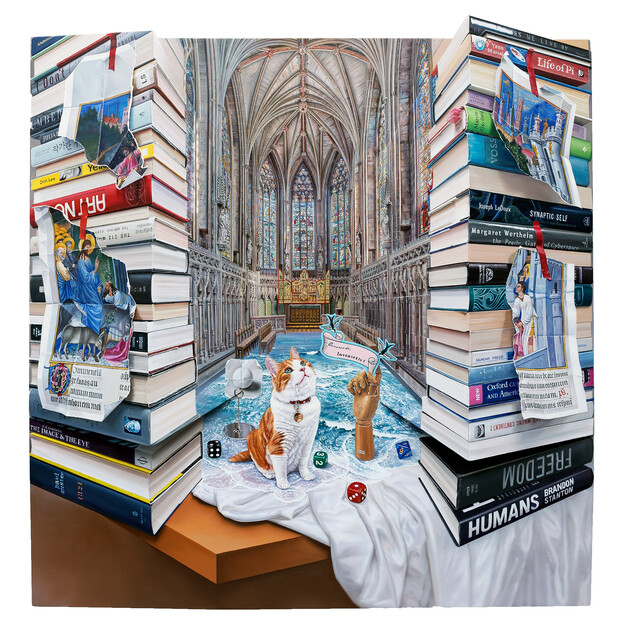 Oil on constructed birch panel, 108 × 105 × 11 cm.
