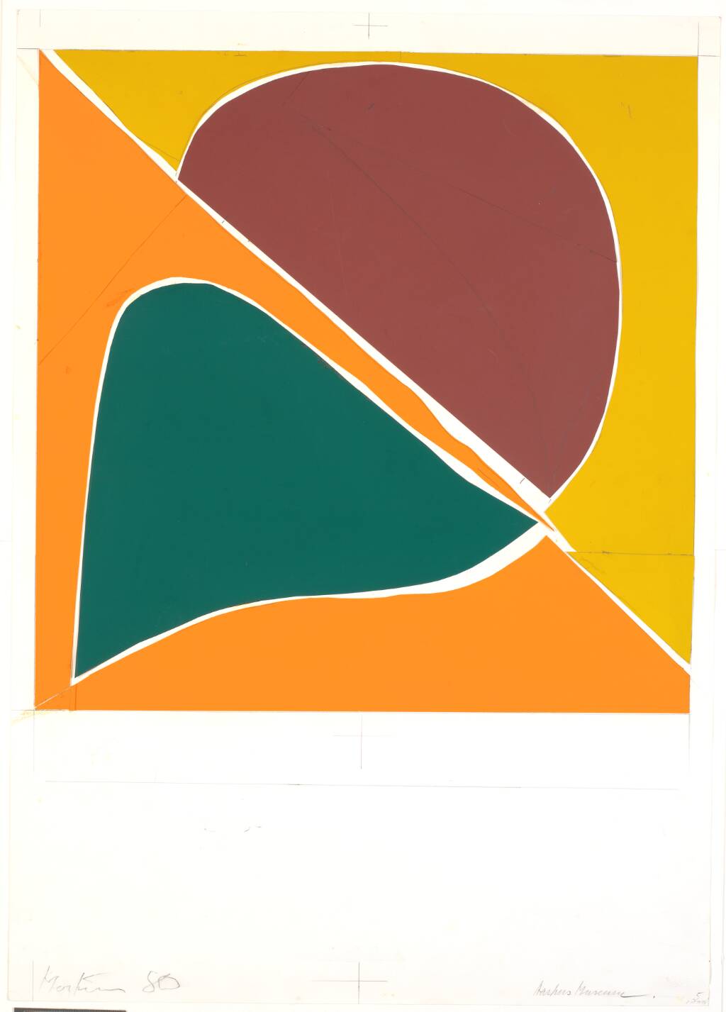 Title: Forlæg for plakat til Mortensens separatudstilling på Aarhus Kunstmuseum 6.9.-5.10. 1980 og for planche 3 til den serigrafiske mappe "Spor i sneen", 1980