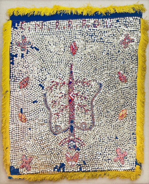 Sequins and beads, cloth, 37 × 30 in.