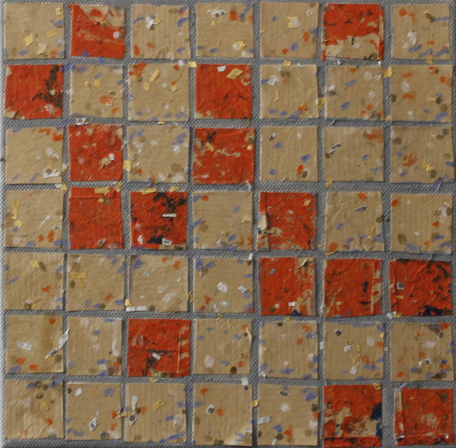 Acrylic and paper collage on canvas, 20 × 20 cm.