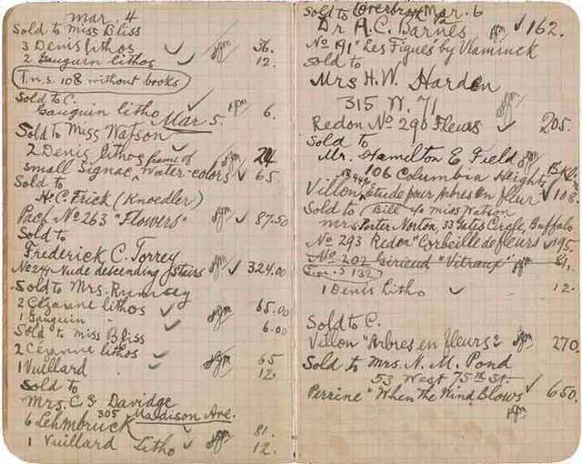 Walter Pach notebook recording sales at the New York Armory Show 1913, Feb. 18-Mar.15, from the Walter Pach papers