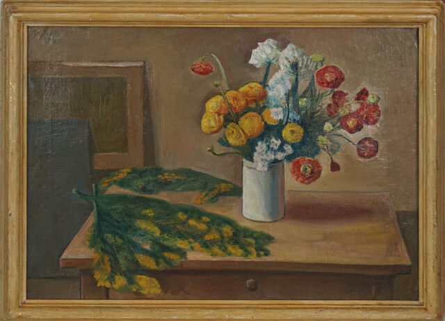 Title: Walter Pach, Modern Floral Still Life of Ranunculus and Mustard Oil Painting on Linen (1911)