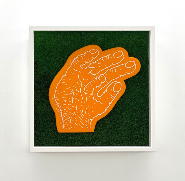 Foam hand, artificial turf, 24 × 24 in.