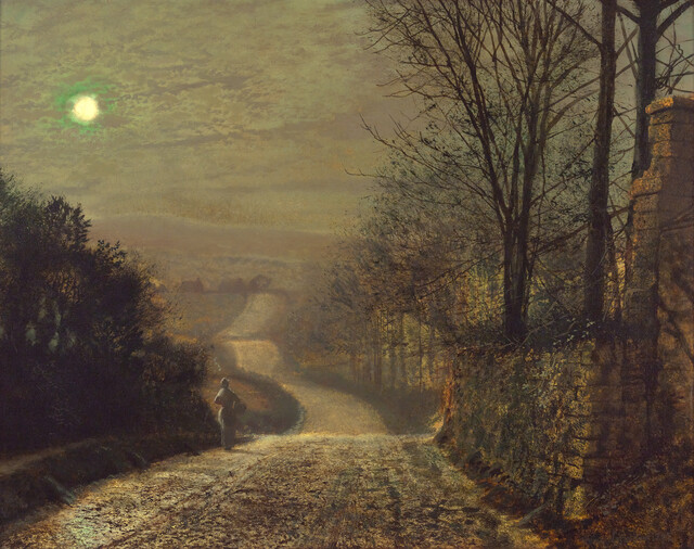 Title: John Atkinson Grimshaw, A Figure in the Moonlight (1875)