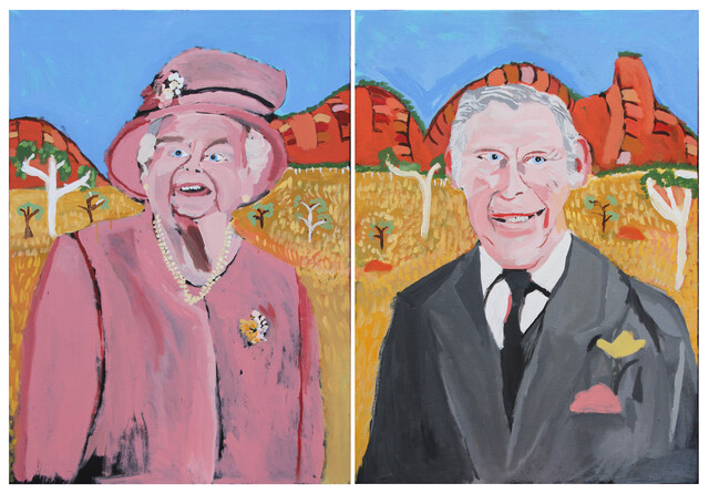 Vincent Namatjira, The Royal Tour (Elizabeth and Charles on Country), (400-22) (diptych) (2022)