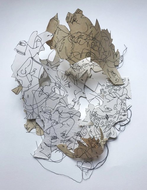 Ink on Canson, Schoellershammer and handmade paper with thread, 29 × 34 × 2 cm...