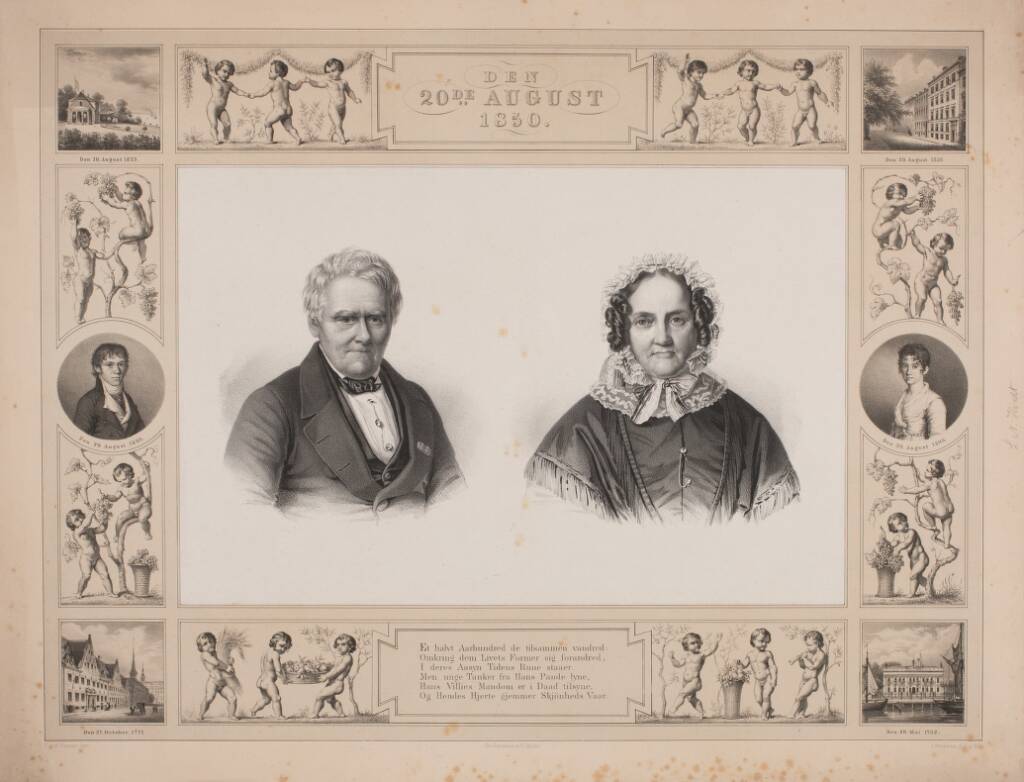 Title: L.N. Hvidt og Therese Wilhelmine Hvidt, mindeblad i anledning af deres guldbryllup d. 20. august 1850