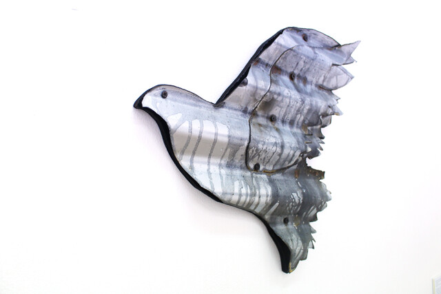 Corrugated steel and mixed media, 124 × 150 cm...