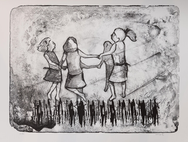 Corrugated steel and mixed media, 124 × 150 cm...
