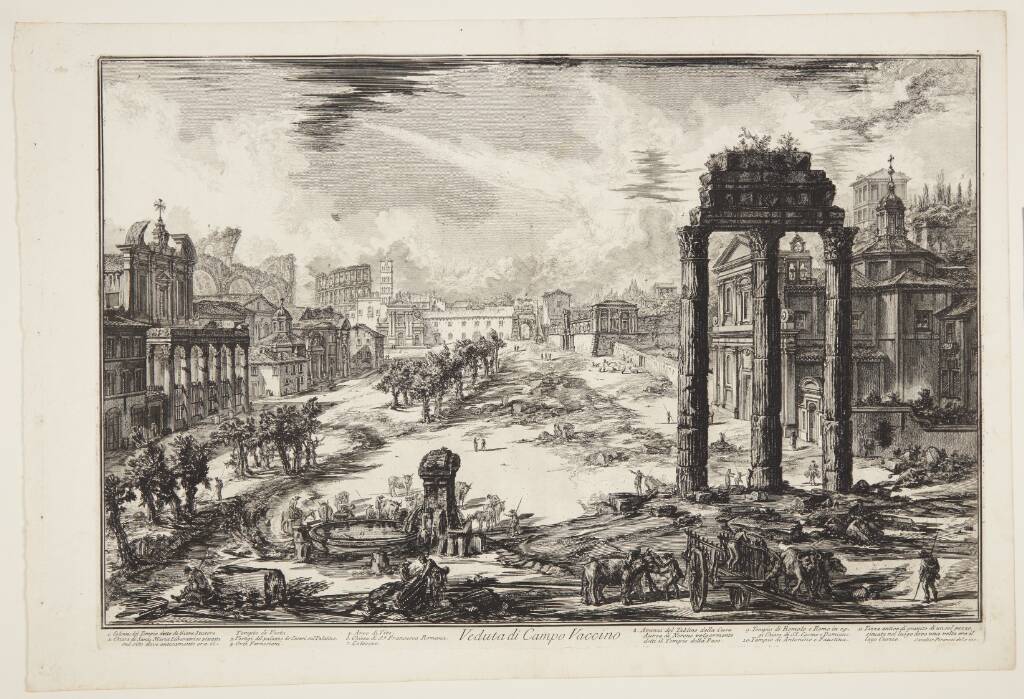 View of the Campo Vaccino (Roman Forum with the Temple of Castor and Pollux to right), from "Vedute di Roma" (Roman Views), part II