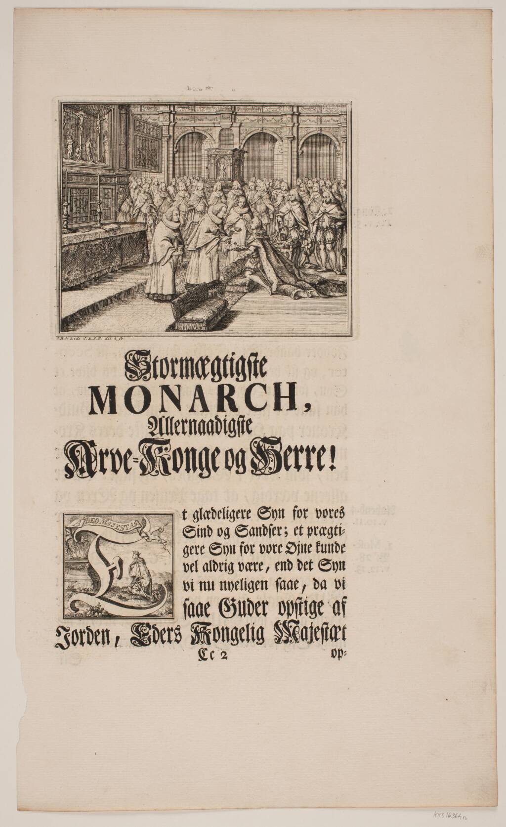 Title: Biskop Hersleb salver Kong Frederik V i Frederiksborg Slotskirke. Illustration og Vignet til Frederik d. IV's salvingsakt